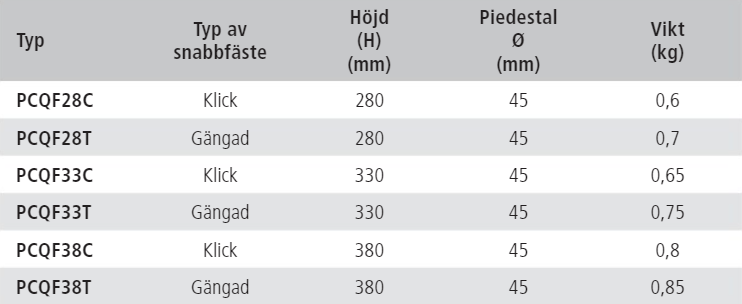 Piedestalben med snabbfäste, fast höjd - Klick - 280mm är restbeställd och skickas så fort den finns i lager igen.