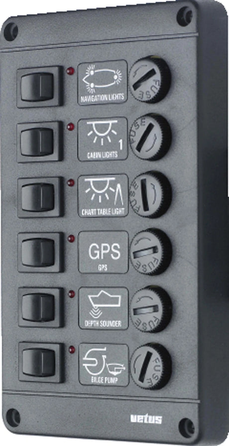 Strömbrytarpanel, 12/24 V, för 8 bladsäkringar eller automatsäkringar (16 bladsäkringar ingår)
