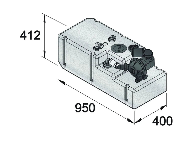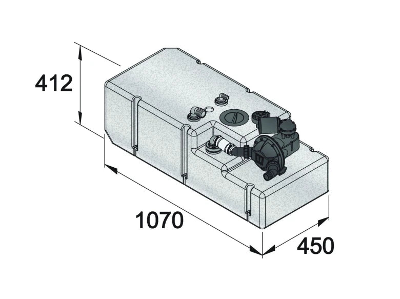 Lämplig för 12 eller 24 Volt. Tankarna är i enlighet med ISO 8099 standard. Tank kapacitet 42, 61, 88 eller 120 liter. Väggtjocklek 6,35mm. Sugrör med vinklad Ø 38mm för vakuumtömning. Luftningsanslutning Ø 19mm. Anslutning för tömning Ø 38mm. Hål för inloppsanslutning typ RT..B.