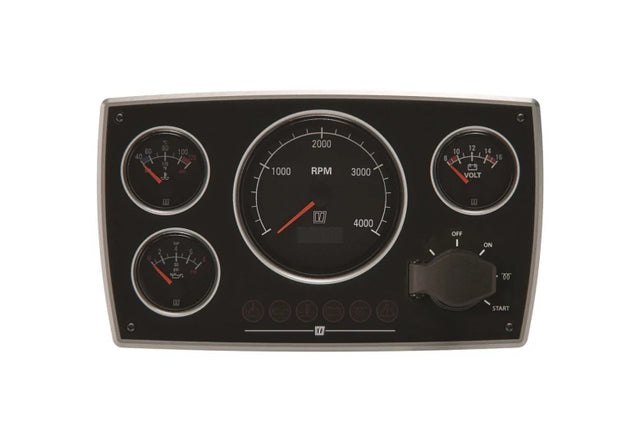Denna motorpanel är utrustad med 6 varningslampor, akustik larm, förvärmnings-/tändningslås med nyckel, kombinerad med varv-/timräknare, temperaturmätare, oljetrycksmätare samt en voltmätare.