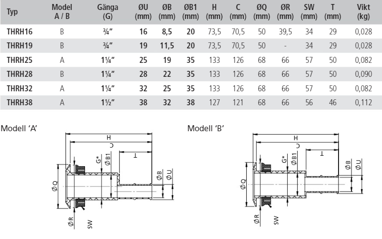 Bordsgenomföring med fasad fläns typ THRH - 3/4'' - Ø 16mm (B) är restbeställd och skickas så fort den finns i lager igen.